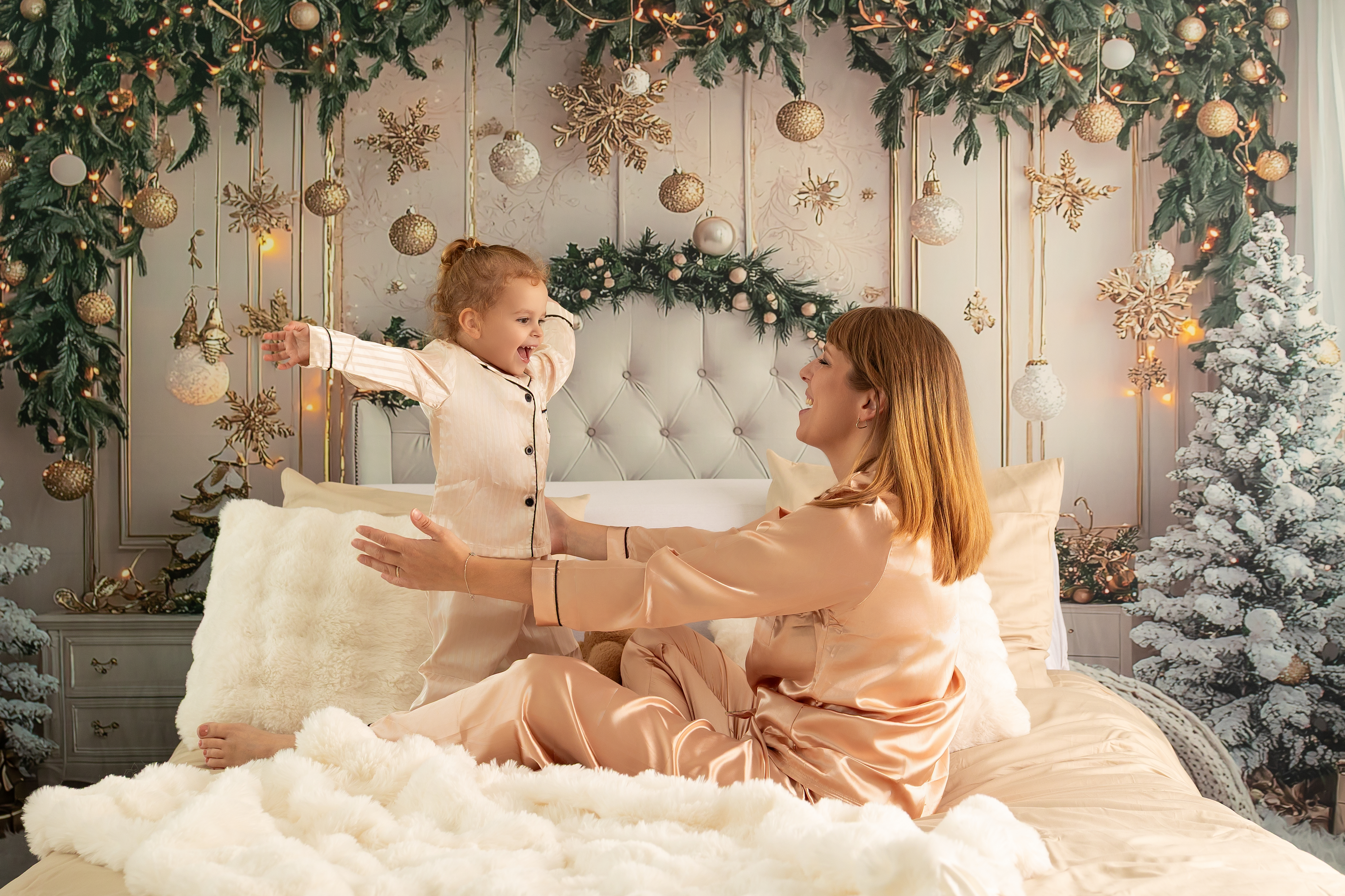 Tout le monde se rejoint dans la chambre le matin de Noël pour un moment cocooning.